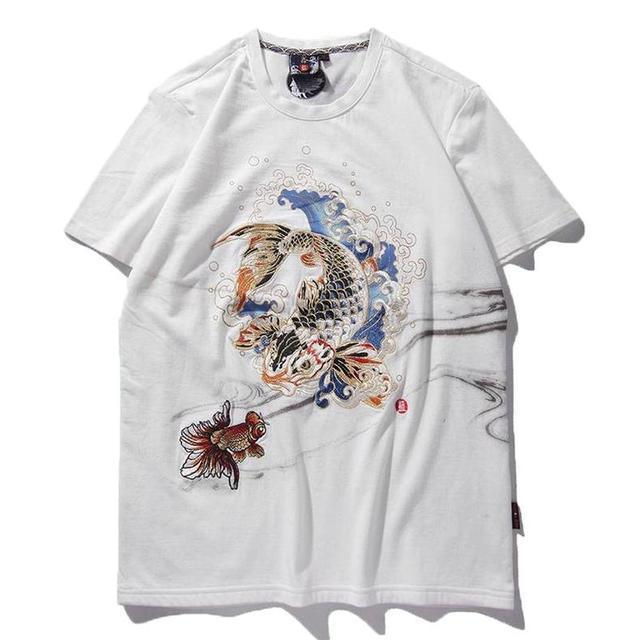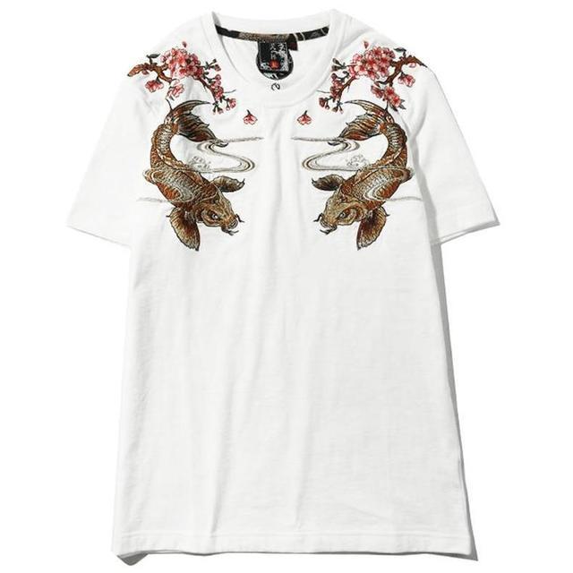 泥棒藍(lán)鯉魚精致刺繡工藝,惟妙惟肖,讓整件衣服有了豐富的內(nèi)涵;經(jīng)典圓領(lǐng)T恤的設(shè)計(jì),恢復(fù)性好,版型干練又利落。