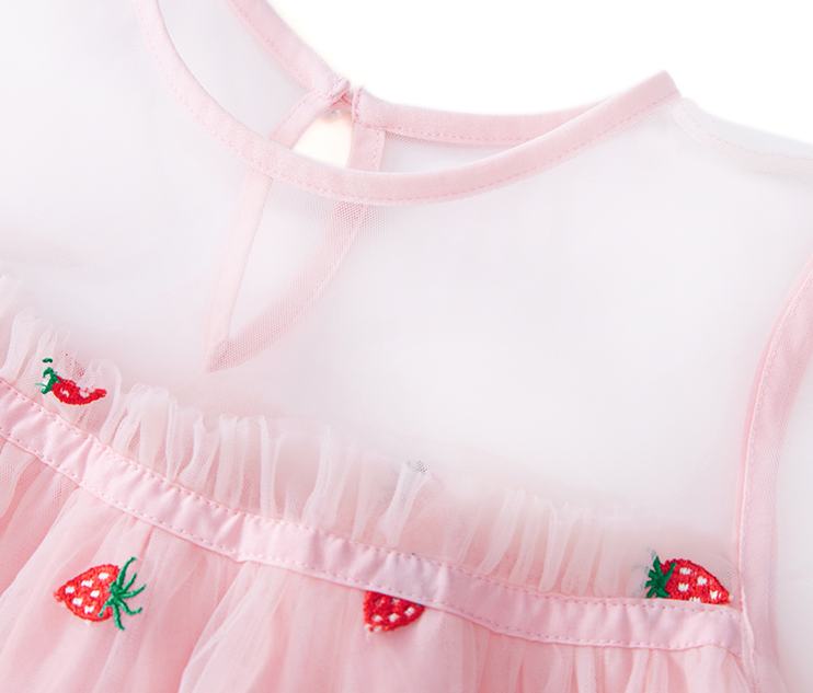小草莓刺繡網(wǎng)紗連衣裙,穿上就是甜美女孩
