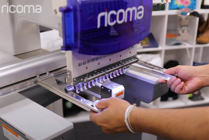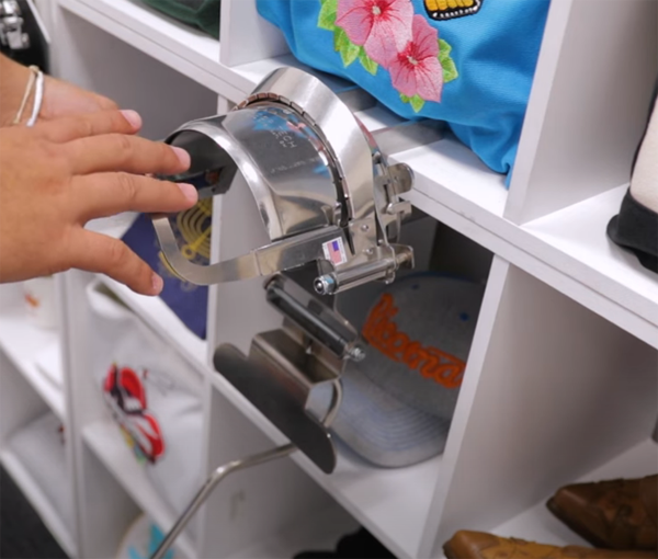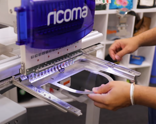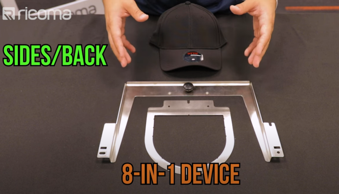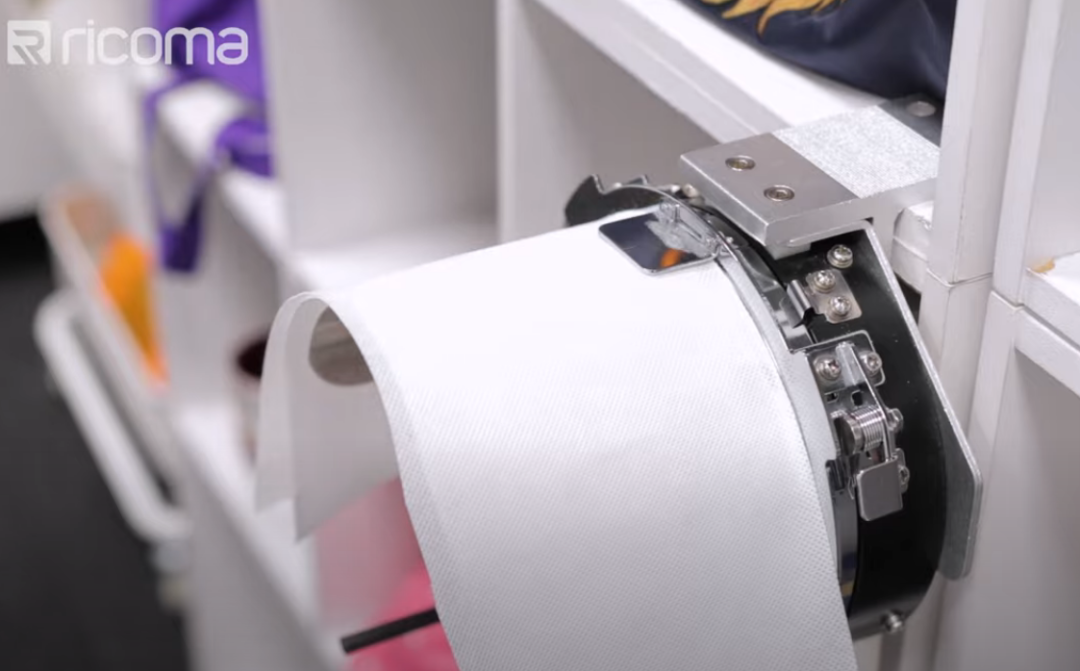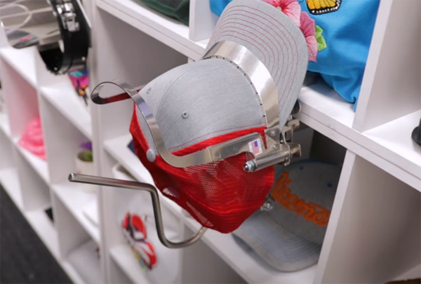弧形裝置操作非常方便,只需要打開框架,箍上帽子,合上框架,就可以將裝置插入機器,開始刺繡。